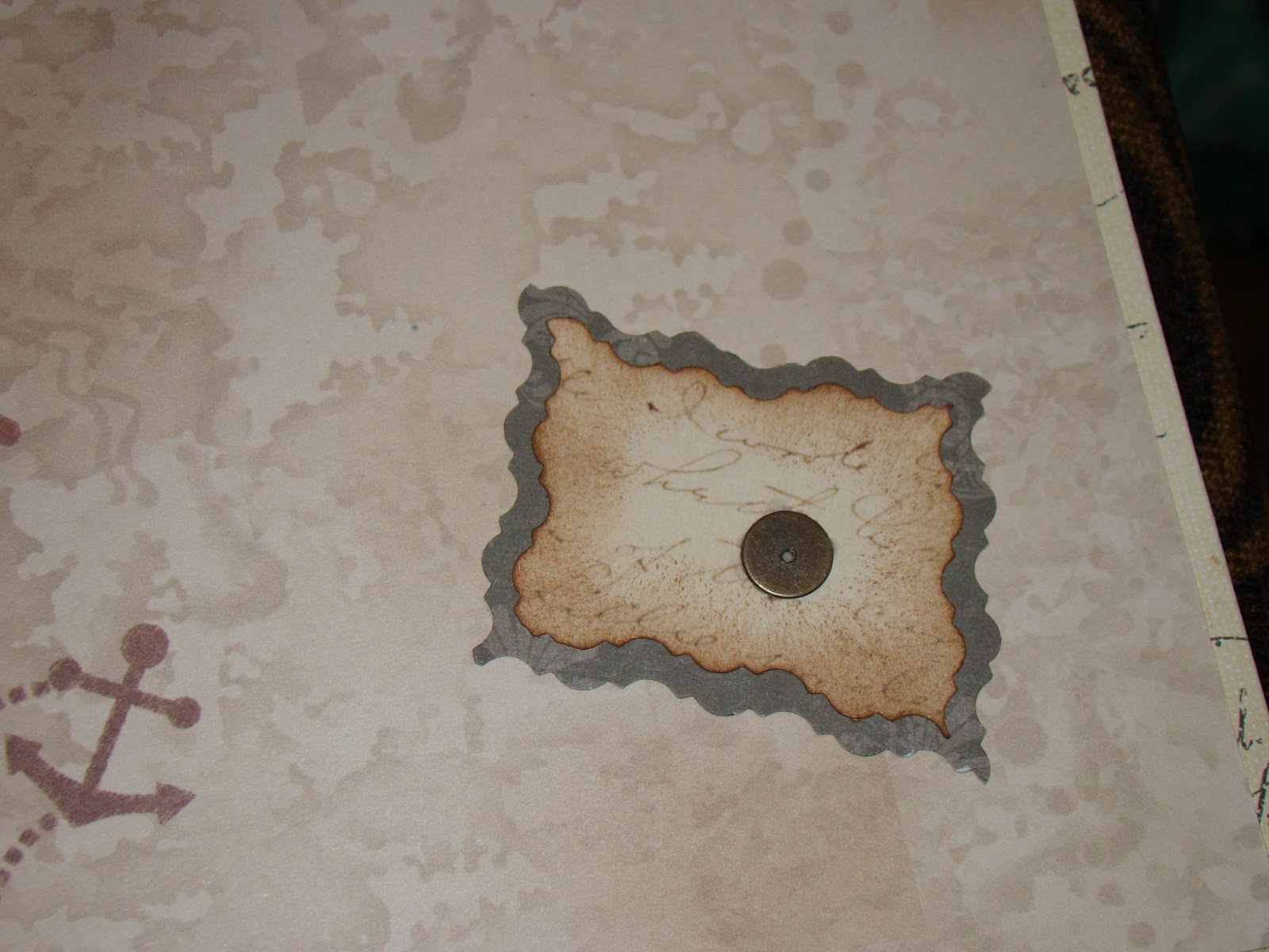 Из кармашка с затонированным фигурным краем выглядывает моя визитка, сделанная для таких выставок, и фишка. Штамп - песочные часы.